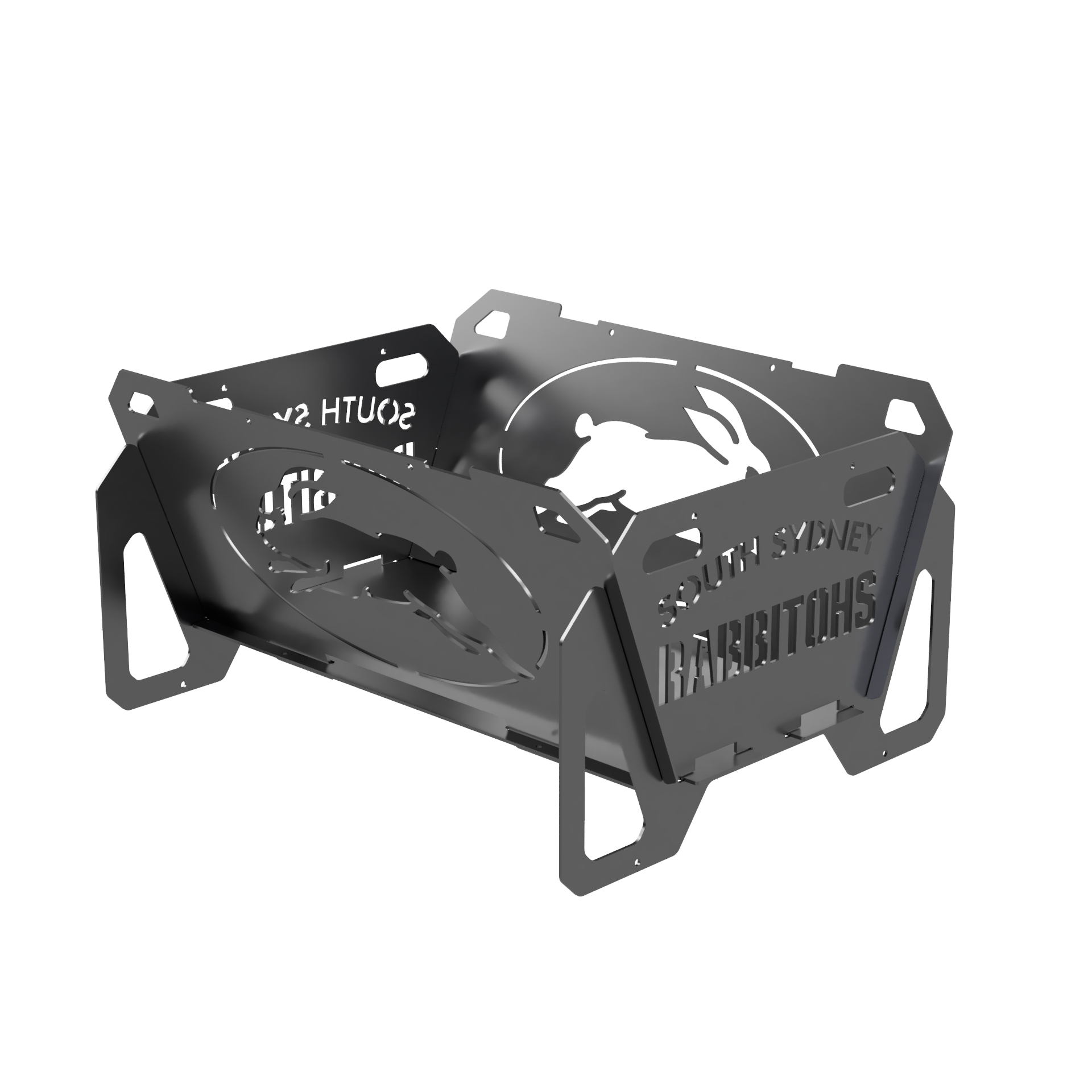 Light up your camping trip with the Upper Cut Co Flatpack Fire Pit! This portable fire pit features a South Sydney Rabbitohs design, perfect for NRL and rugby league fans. Easy to assemble and pack, it's a must-have for any outdoor adventure. Go bunnies! (But not literally, that would be weird.)