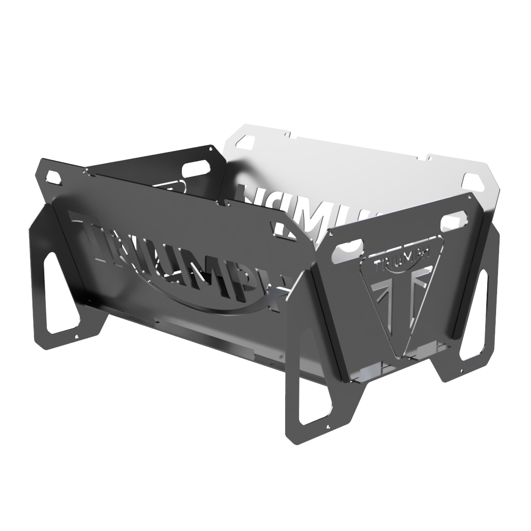 Introducing the Upper Cut Co Flatpack Fire Pit. Crafted for the adventurous, this portable fire pit is the perfect addition to your Triumph Motorcycle ride. Take a break and cruise in style with this sleek and functional accessory. Elevate your outdoor experience with a touch of luxury.
